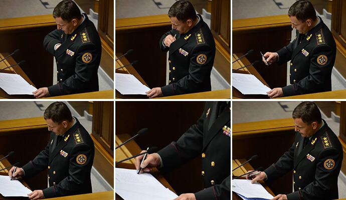 Manden er heller ikke bundet af sin ed om at behandle “fjenden” efter krigens regler, for han glemte at tage hætten af sin pen, da han tilsyneladende skrev under i det ukrainske parlament: https://pbs.twimg.com/media/BrpEiZ-CUAAYQYT.jpg:large